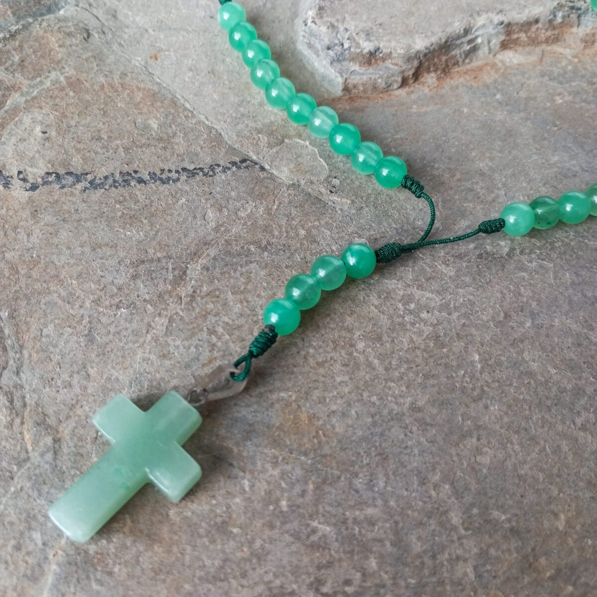 Camándula en Piedra Aventurina con Cruz en Aventurina