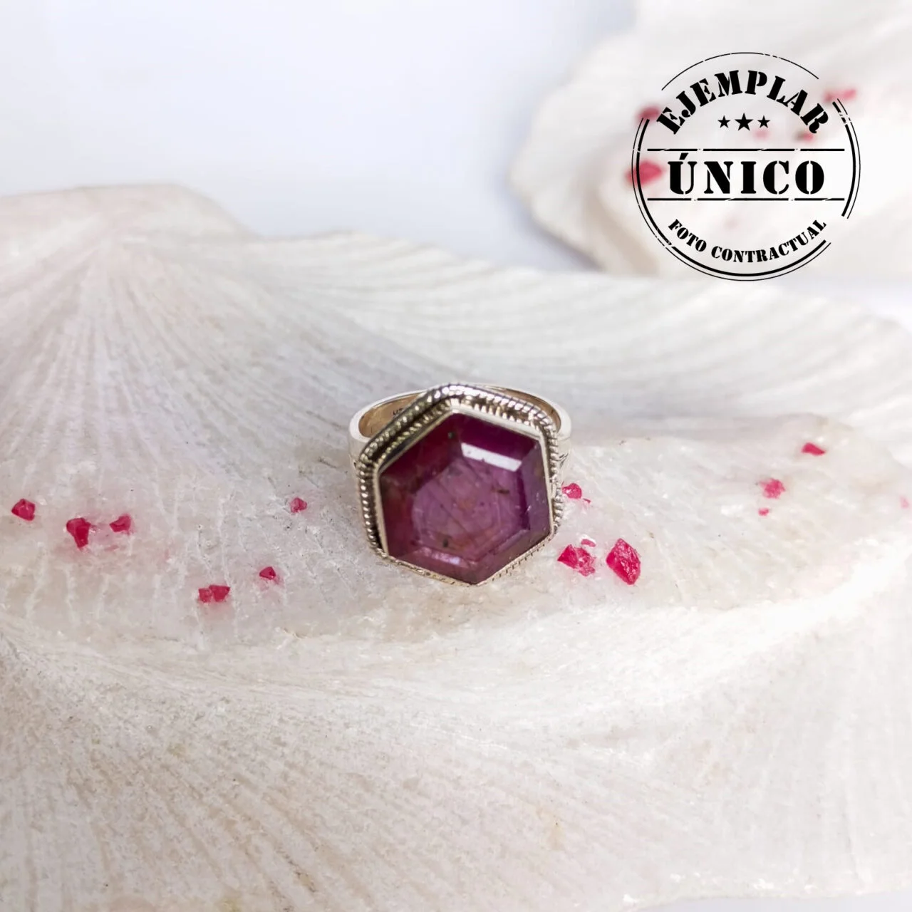 Este deslumbrante anillo de plata 925 presenta una maravillosa piedra de rubí en su centro, emanando pasión y sofisticación. La intensidad del rubí se une a la elegancia de la plata para crear una joya que no pasará desapercibida.