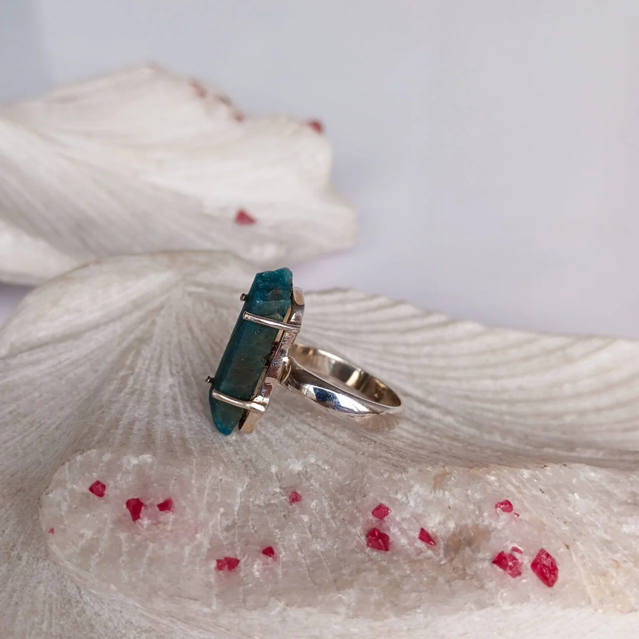 Este anillo está cuidadosamente diseñado para resaltar la elegancia de la plata 925 y la belleza natural de la apatita. La plata utilizada es de alta calidad y ha sido moldeada de manera artesanal para crear un diseño que sea a la vez sofisticado y atemporal. La piedra natural de apatita está engastada de forma segura en la montura de plata, lo que permite que la piedra sea el punto focal del anillo. Es perfecto para complementar tu estilo personal y agregar un toque de color y elegancia a tu atuendo. Para mantener la belleza de tu anillo de plata con apatita, es importante limpiarlo regularmente con un paño suave y evitar el contacto con productos químicos agresivos que puedan dañar la piedra o la plata.