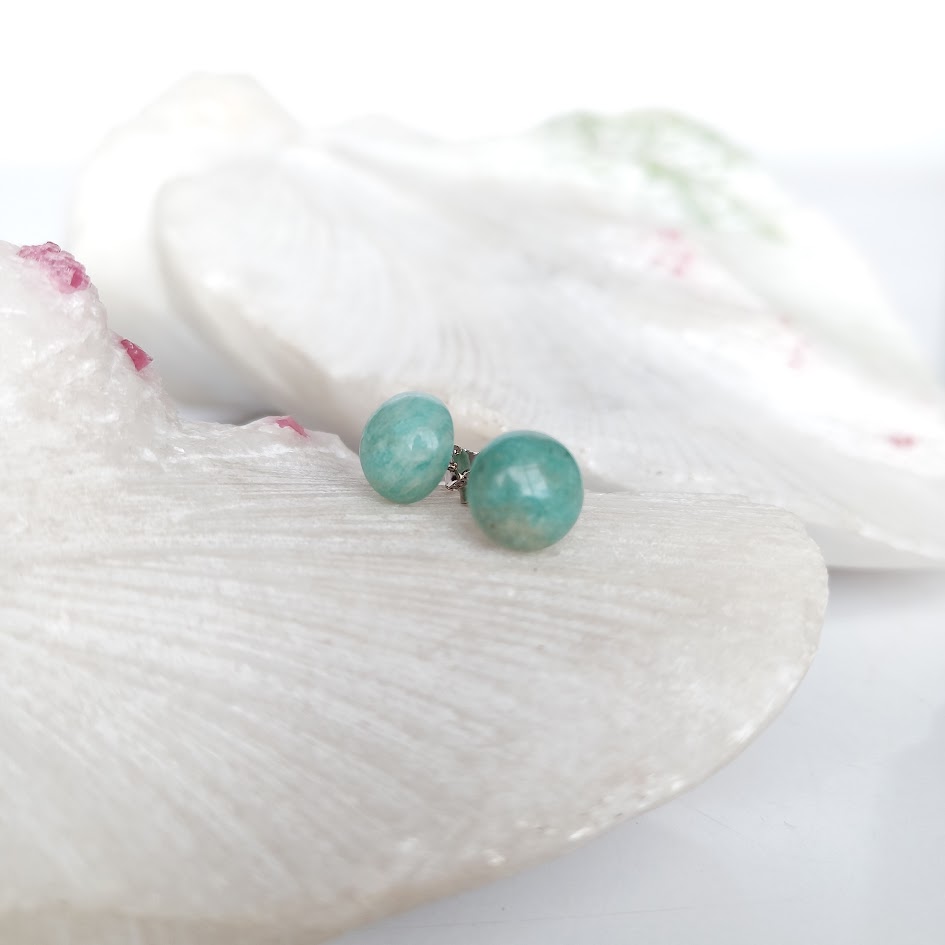 Elaborados en plata, estos aretes resaltan la delicadeza de la Amazonita en una forma redonda que aporta armonía y equilibrio visual. Cada piedra presenta variaciones naturales en sus tonos, haciendo que cada par sea único. Un accesorio fresco y versátil, ideal para quienes buscan una joya sutil, con un aire natural y un significado que conecta con la calma y la autenticidad.