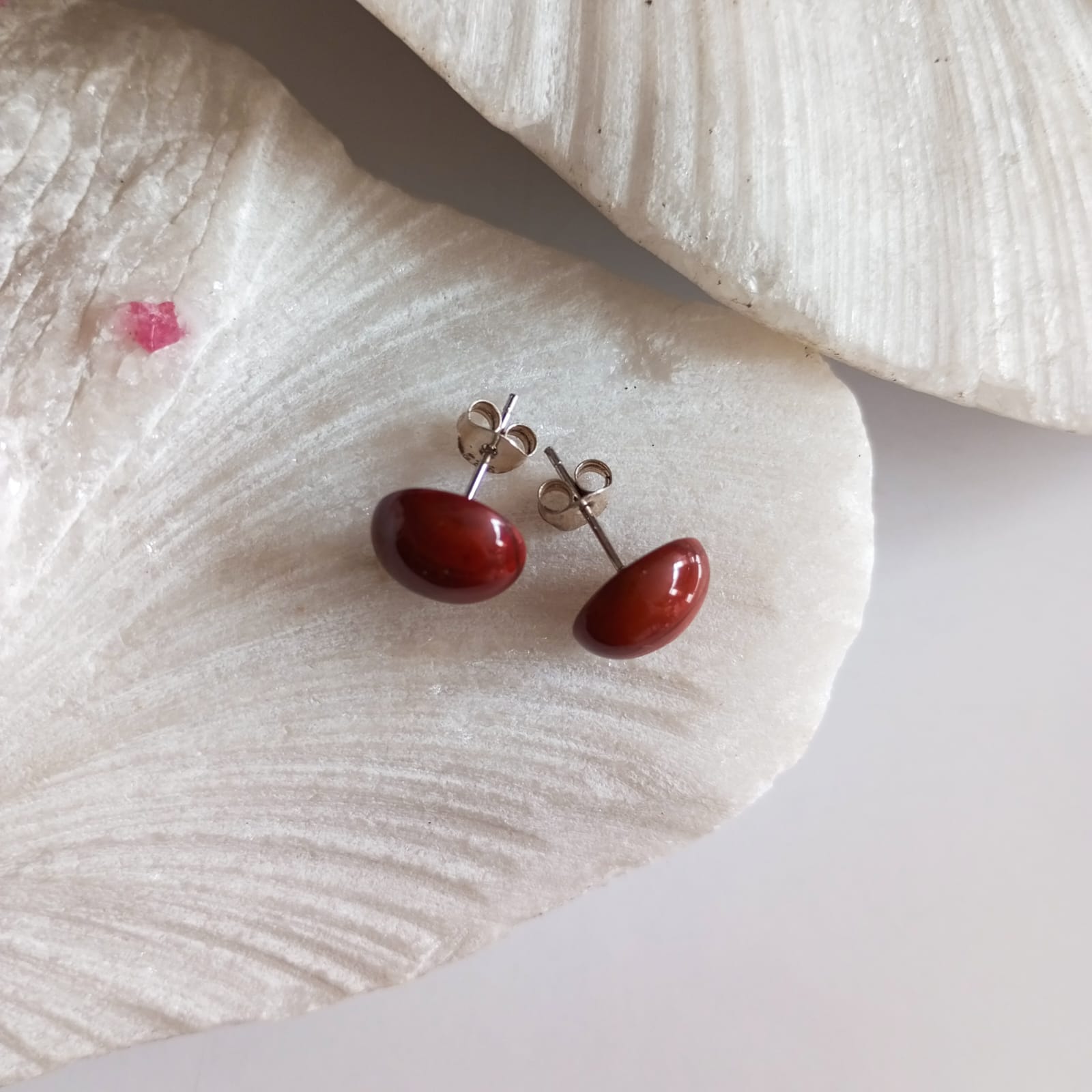 Estos elegantes aretes en plata presentan la vibrante piedra Jaspe Rojo en un diseño tipo topo. La intensidad de su color rojizo aporta un toque de energía y vitalidad, mientras que el diseño tipo topo ofrece una apariencia moderna y sofisticada, ideal para cualquier ocasión. Estos aretes combinan la belleza natural del Jaspe Rojo con la elegancia de la plata, creando un accesorio versátil que añade un destello de color y estilo a tu look diario o a eventos especiales.