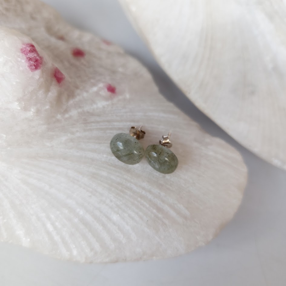 Estos aretes están elaborados en plata y presentan una Labradorita en forma ovalada, resaltando sus destellos naturales en un diseño limpio y elegante. Su sistema es tipo poste, lo que permite un ajuste cómodo y seguro, ideal para el uso diario. Una pieza sutil pero con carácter, donde la luz de la piedra se convierte en el verdadero protagonista.
