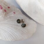 Aretes en Plata con Piedra Labradorita Redondos 8mm $30,000