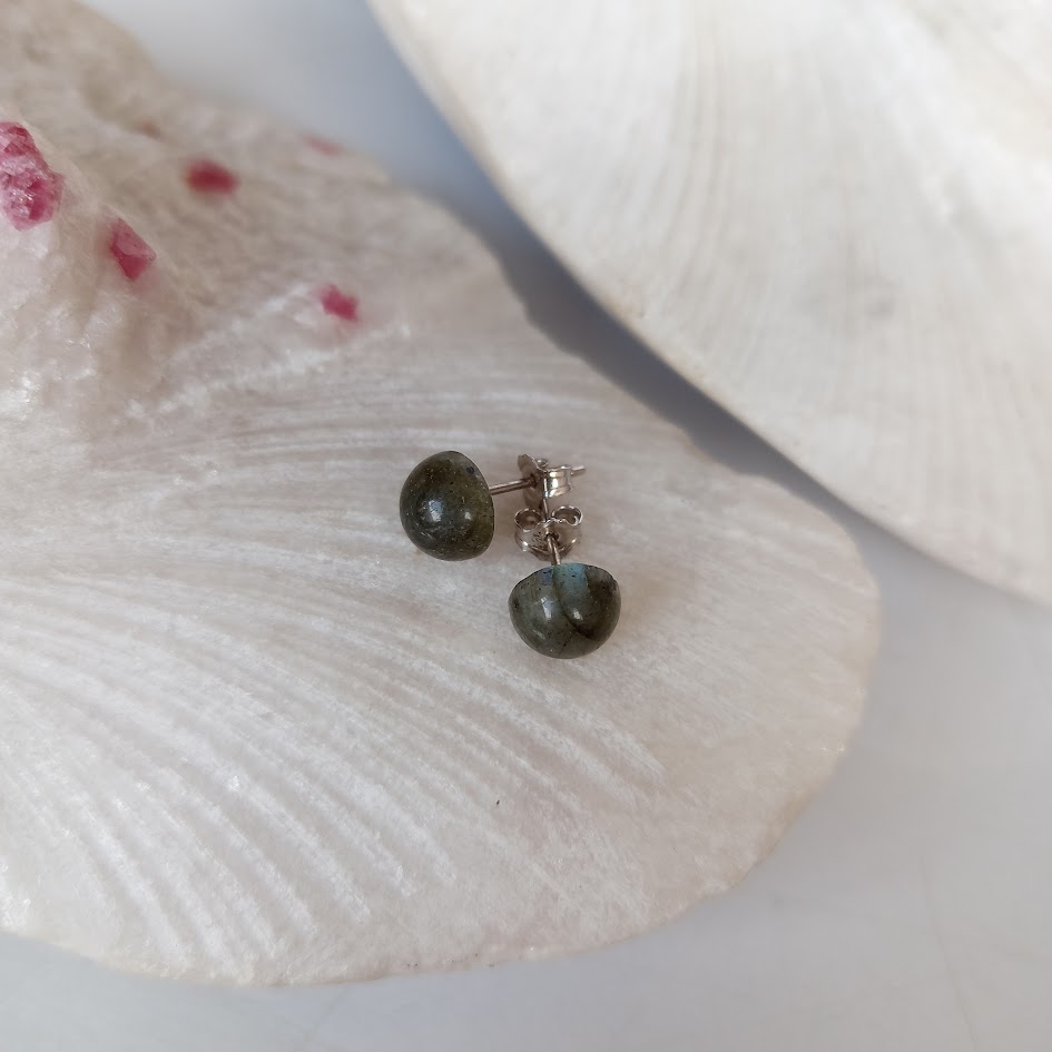 Aretes en Plata con Piedra Labradorita Redondos 8mm