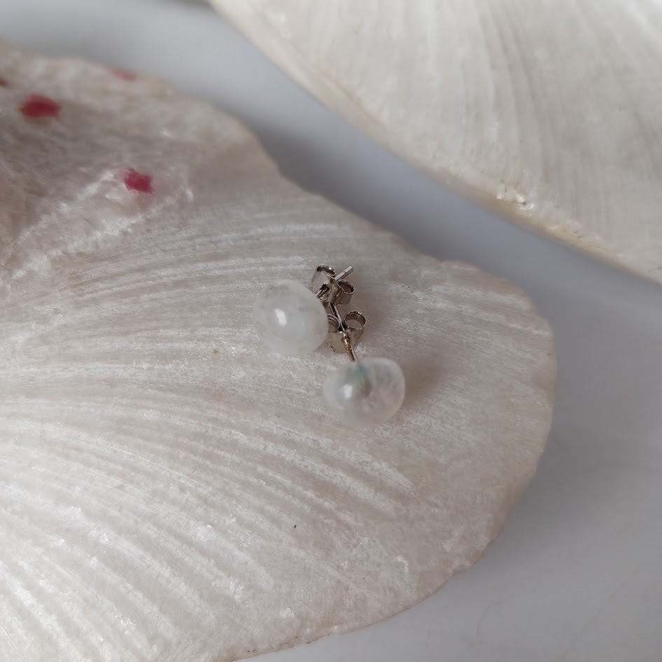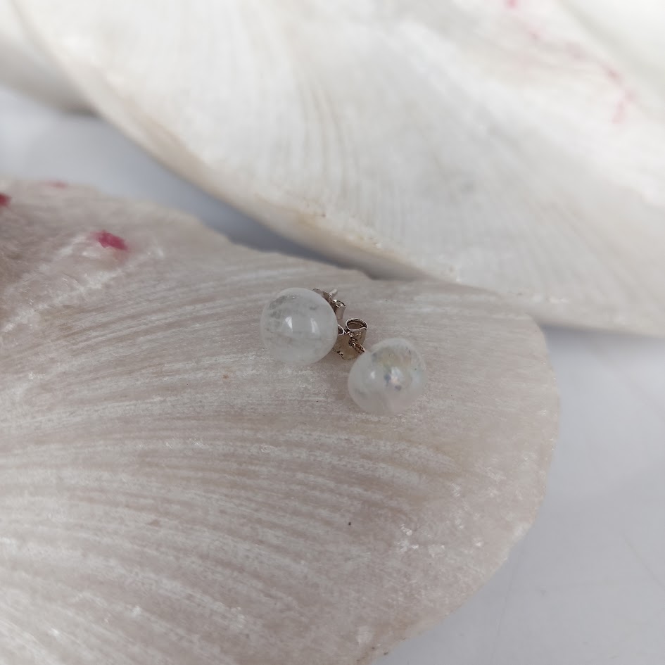Estos aretes están elaborados en plata y cuentan con Piedra Luna en forma redonda, un diseño clásico que resalta de manera armónica su luminosidad natural. Su sistema es tipo poste, lo que brinda un ajuste cómodo y seguro, ideal para el uso diario. Una pieza sutil y elegante, donde la luz de la piedra es la protagonista.