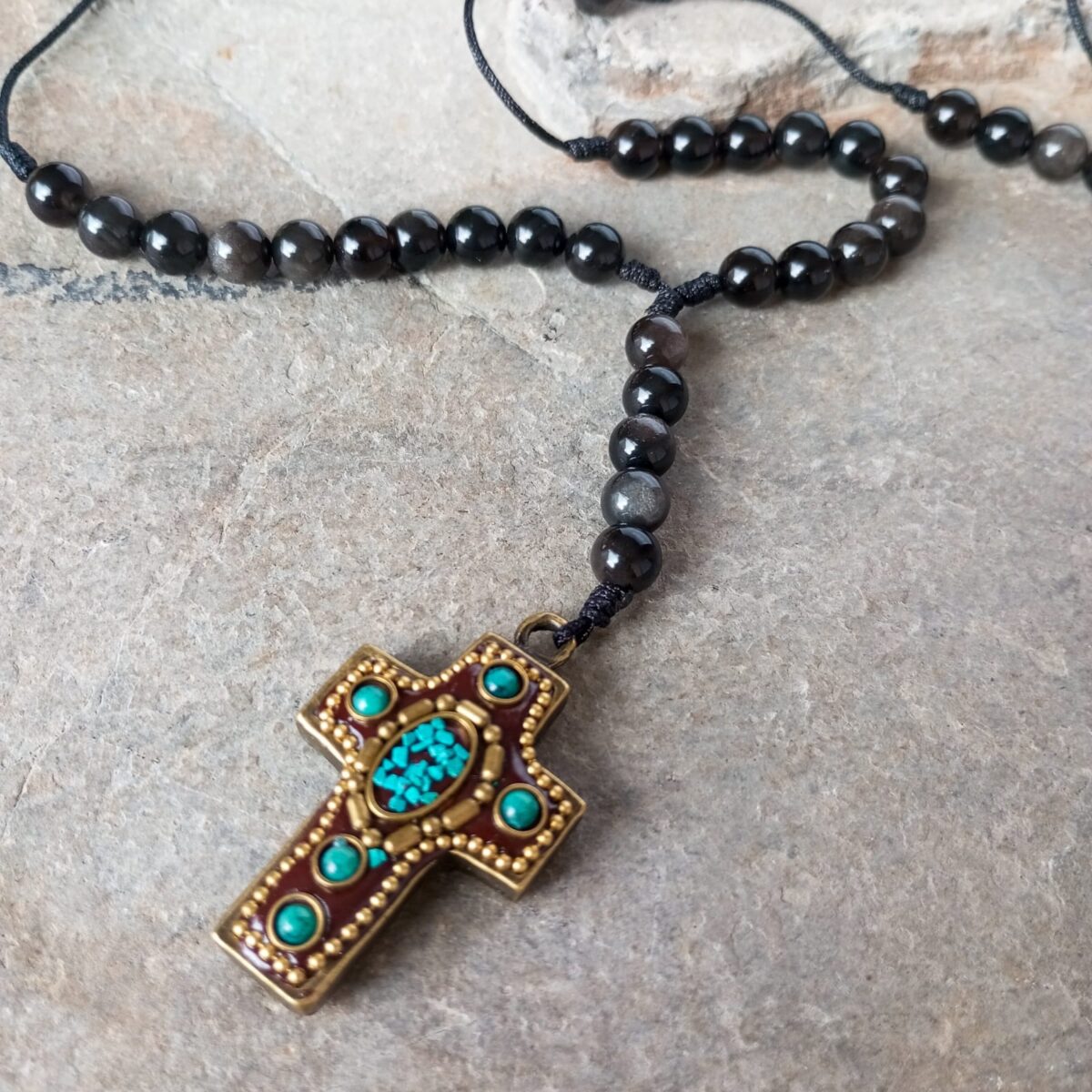 Cada camándula es hecha a mano, lo que la convierte en una pieza única, no solo por las variaciones naturales de sus piedras, sino también por su forma, estilo y la combinación particular de la cruz con sus piedras. No existen dos iguales, haciendo de cada una una creación especial.