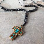 Cada camándula es hecha a mano, lo que la convierte en una pieza única, no solo por las variaciones naturales de la obsidiana, sino también por su forma, estilo y la combinación particular de la cruz con sus piedras. No existen dos iguales, haciendo de cada una una creación especial.