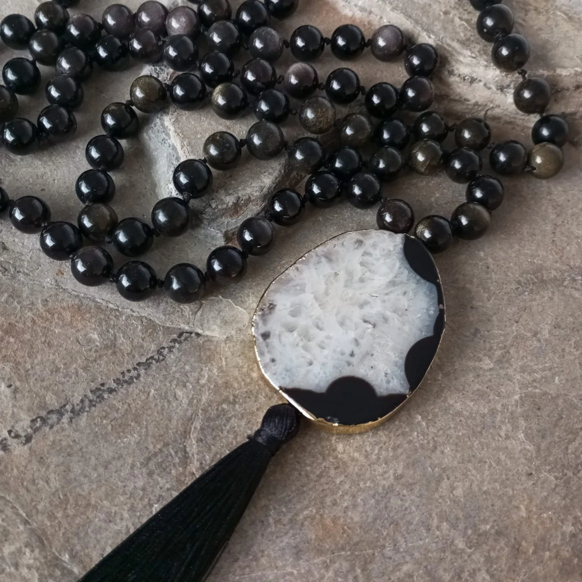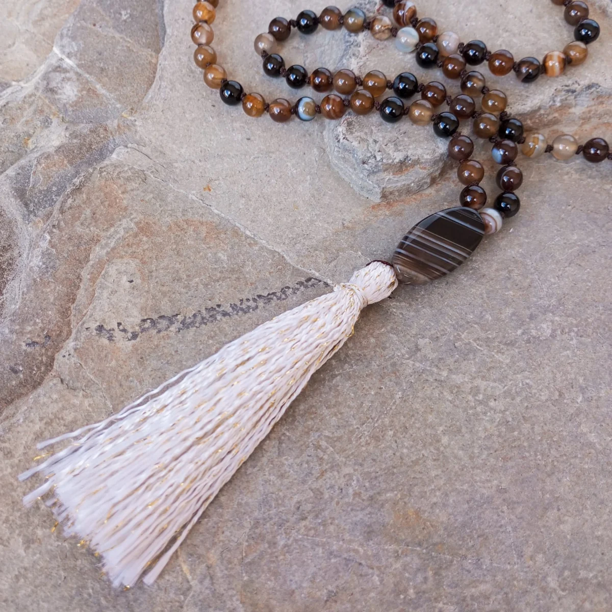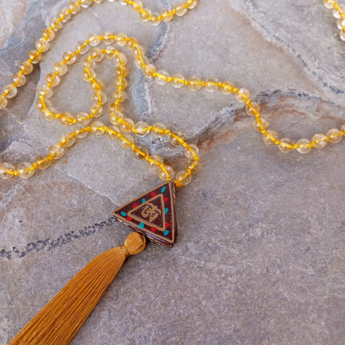 Nota: Esta Japa Mala es un diseño único e irrepetible. La pieza que recibirás es exactamente la que ves en la foto; no existe otra igual. Su singularidad la convierte en un tesoro exclusivo, perfecto para quienes buscan una conexión personal y auténtica en su práctica espiritual.