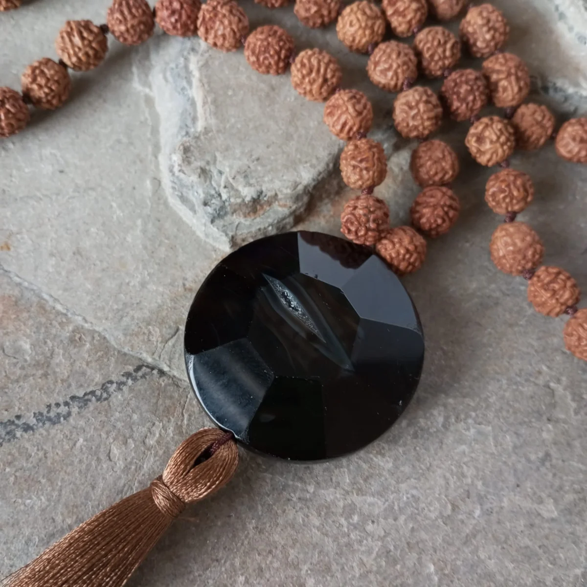 Nota: Esta Japa Mala es un diseño único e irrepetible. La pieza que recibirás es exactamente la que ves en la foto; no existe otra igual. Su singularidad la convierte en un tesoro exclusivo, perfecto para quienes buscan una conexión personal y auténtica en su práctica espiritual.