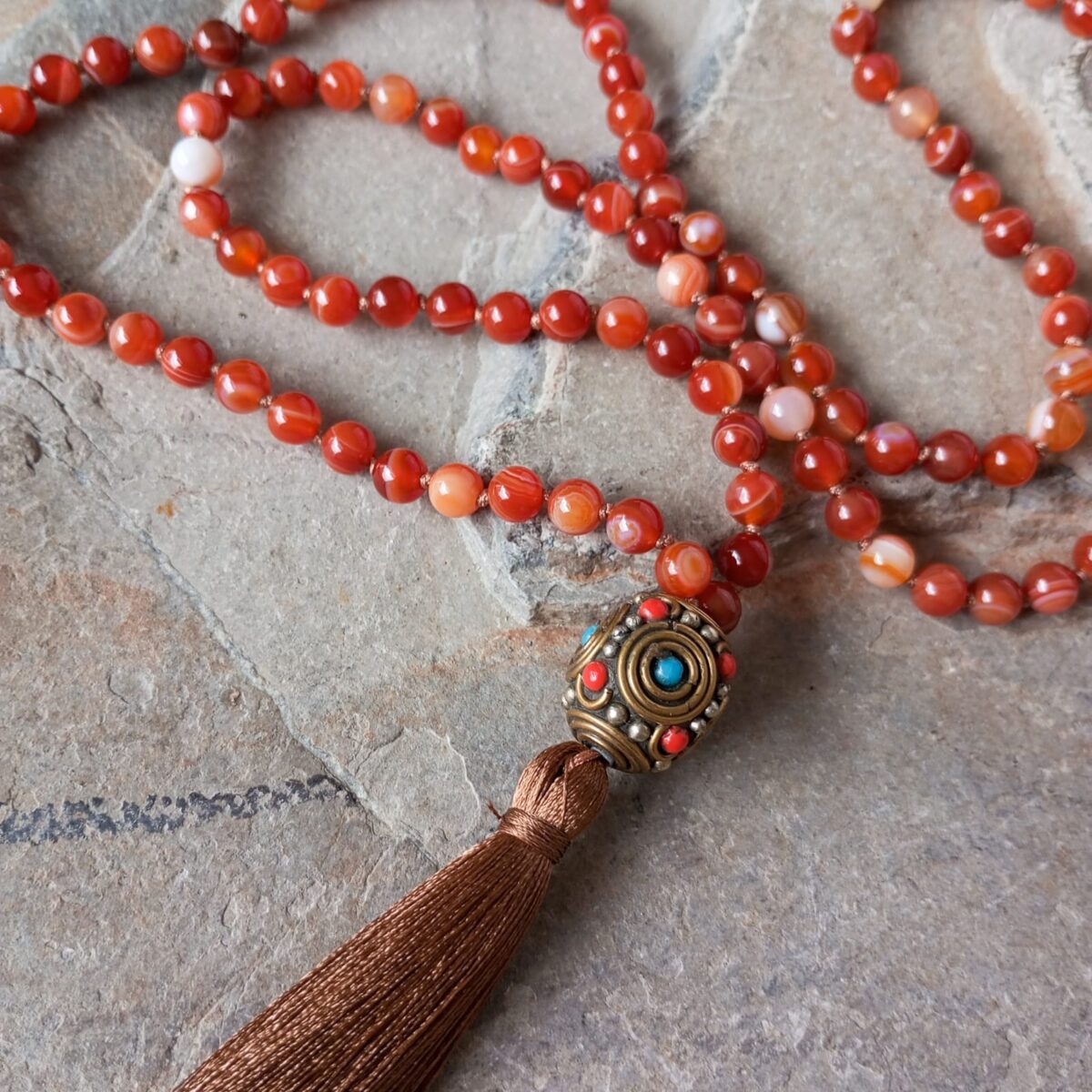 Ideal para acompañarte en tu camino hacia el equilibrio y la serenidad, esta Japa Mala no solo es una herramienta de meditación, sino también un amuleto personal que invita a la conexión profunda con el ser interior.