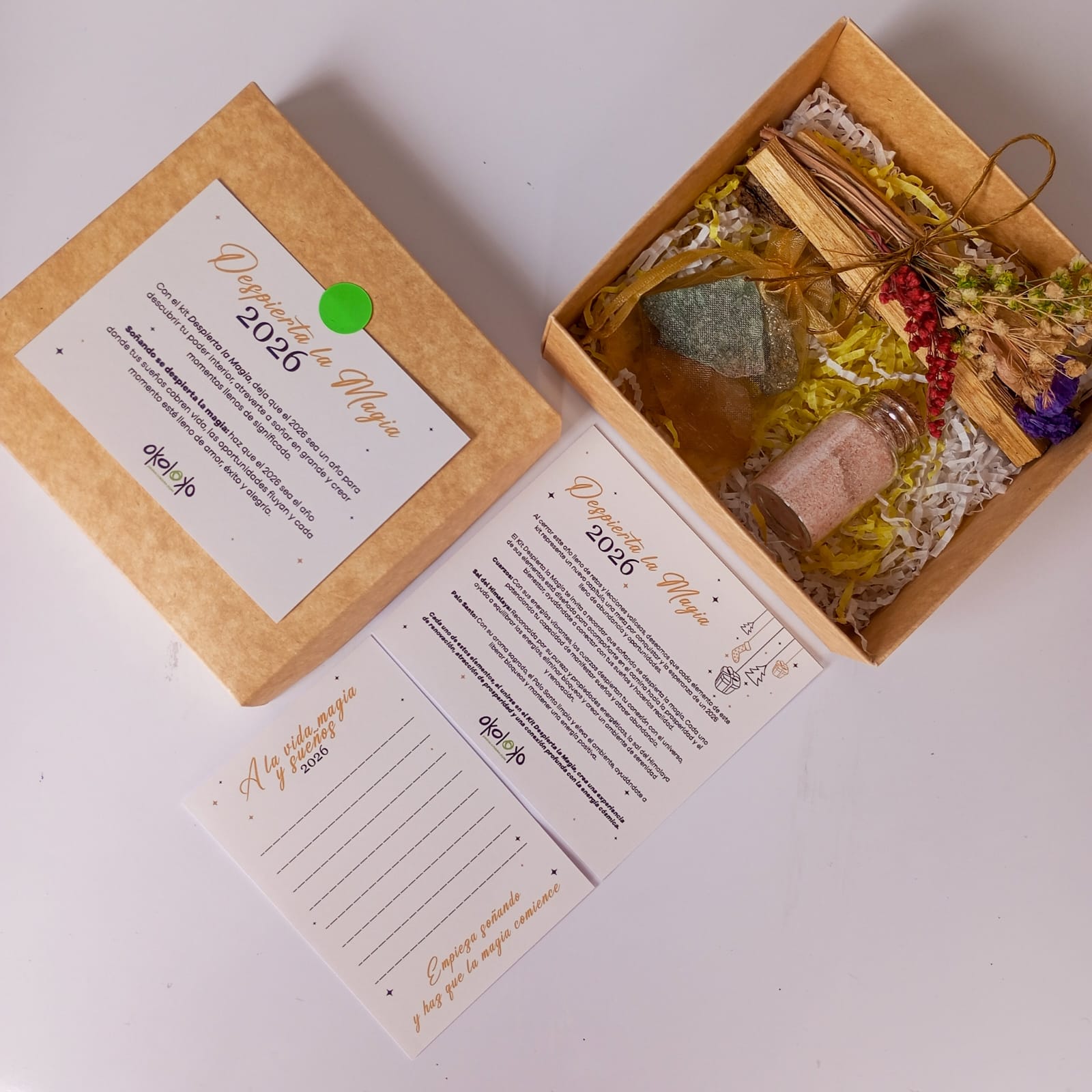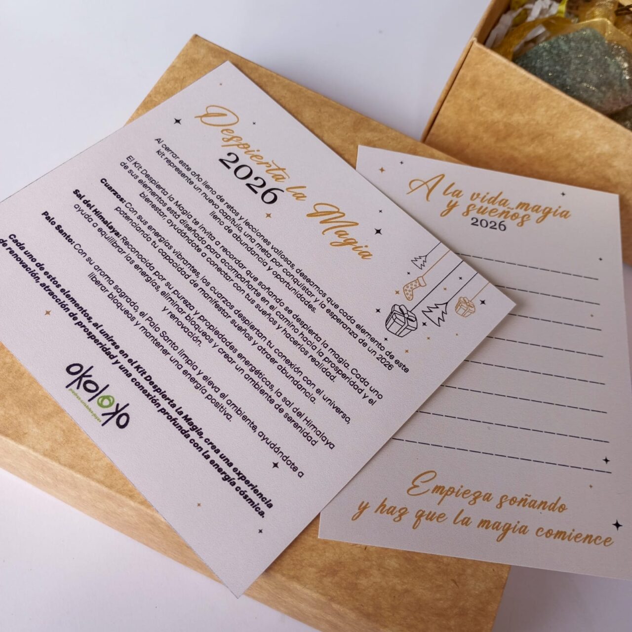 Soñando se despierta la magia: Haz que el 2026 sea el año donde tus sueños cobren vida, donde las oportunidades fluyan y cada momento esté lleno de amor, éxito y alegría. Cada elemento del kit está diseñado para ayudarte a manifestar tus deseos más profundos, recordándote que la magia está en el poder de tus sueños.