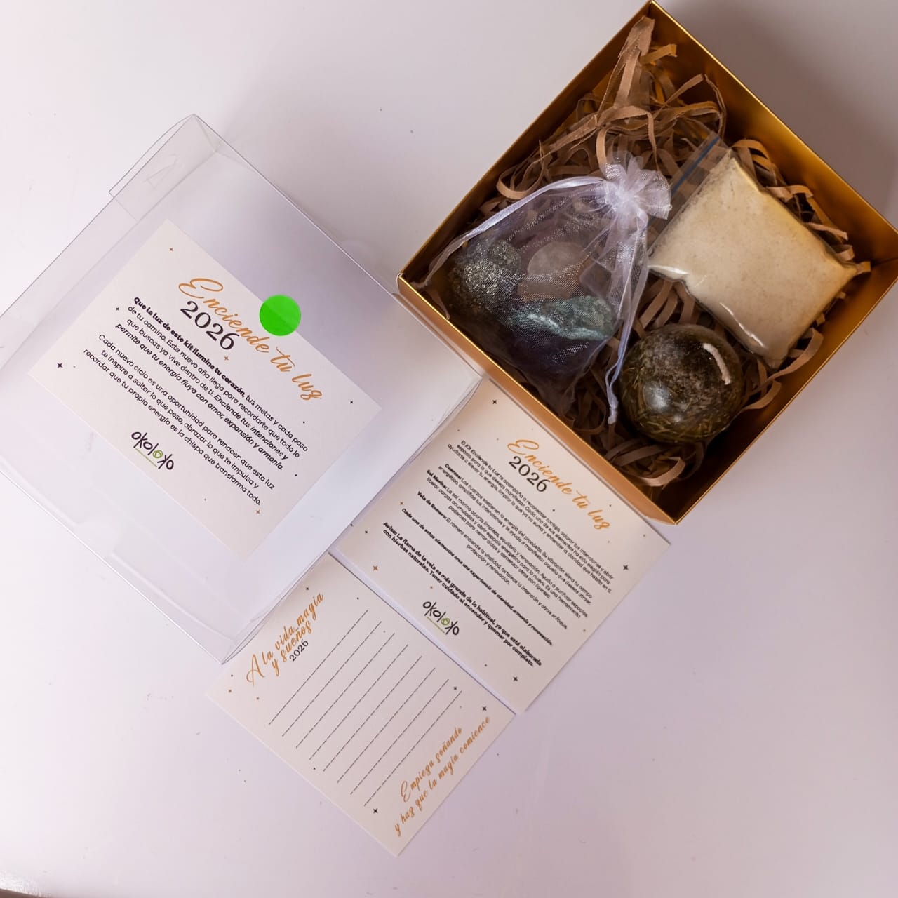 Cada uno de estos elementos, al unirse en el Kit Enciende tu luz, crea un ritual de cierre consciente y apertura energética para recibir el 2026 con claridad, protección y expansión. Es una invitación a limpiar lo que ya cumplió su ciclo, encender nuevas intenciones y abrirte a un año guiado por tu luz interior, tu enfoque y la fuerza de tus sueños.